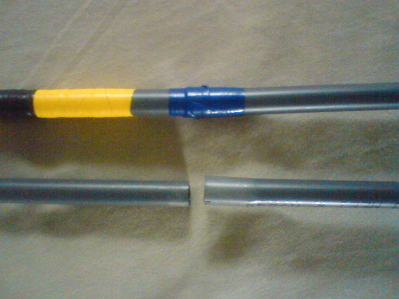 Ez lesz a legalsó cső. Most fogom azt a csövet, aminek mindkét vége bővítetlen maradt, és egyik végébe befaragom és csiszolom és ragasztom az 5 cm-es darab fát az előzőekben leírtak szerint. Ez lesz a legfelső cső, összerakásnál. Ebből készítek kisebb 55 cm-es darabot is a 3. szálból, mert van olyan eset mikor a hosszú, nagyon kilógna a víz fölé.